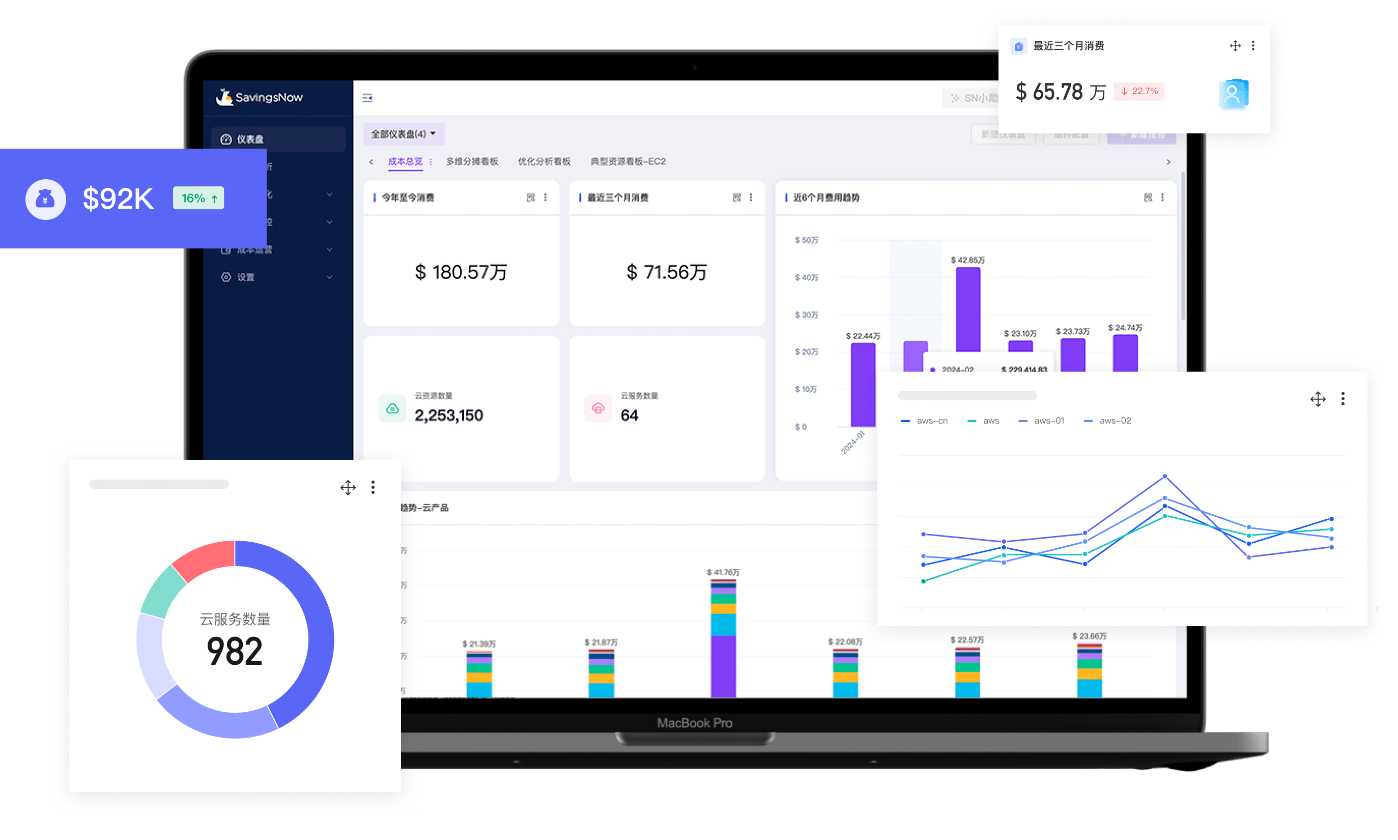 基于FinOps理念,并拥抱AI大模型,提供全方位的云成本管理和优化服务,有效应对多云账单、成本不透明及增长失控的问题,帮助企业实现云成本精准管控与效益最大化。基于可视化成本报告,提供深度的云成本分析,使客户能够直观地理解和管理云资源消费智能成本优化。内建一系列的成本优化和资源配置规则,借助LLM解读,分析成本并自动提出优化建议,帮助客户减少不必要的云资源开销,提高运营成本效率。通过成本分摊和异常提醒等能力,企业更好地进行财务规划和预算控制,避免超支。